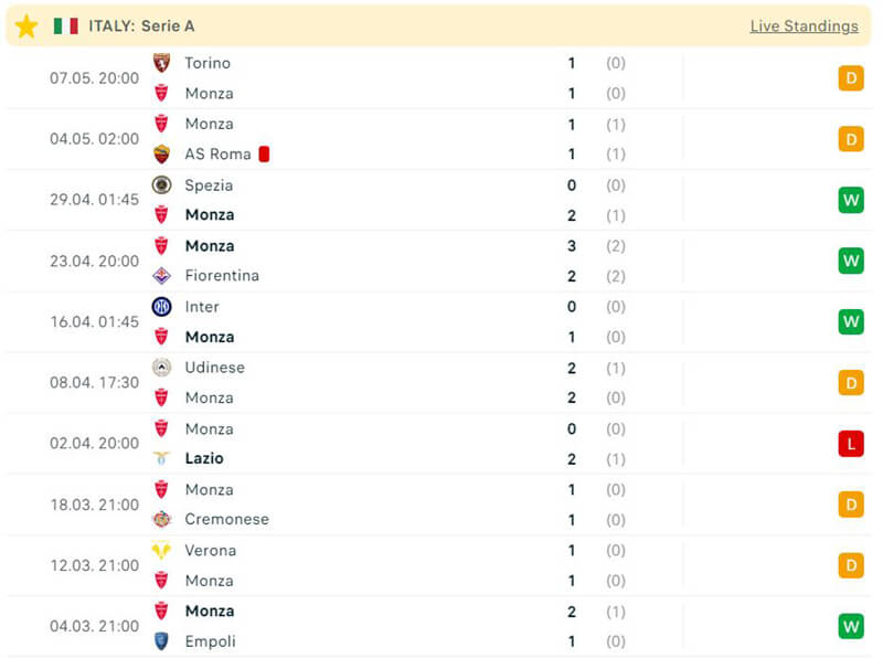 Đội chủ nhà Monza cũng đang có màn trình diễn khá thuyết phục ở thời điểm hiện tại. Trải qua 6 vòng đấu vừa qua, đội bóng này đã có được 12 điểm trước cả AS Roma, Fiorentina, Inter Milan và cả Juventus.