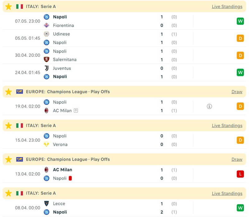 Trong khi đó, đội khách Napoli lại đang có dấu hiệu hụt hơi ở thời điểm quan trọng của mùa giải. Trong 7 trận vừa qua đội bóng này mới chỉ có được 2 chiến thắng. Không chỉ vậy, ở kèo châu Á họ cũng đang cho thấy thành tích nghèo nàn với tỷ lệ thua kèo lên tới 70%.