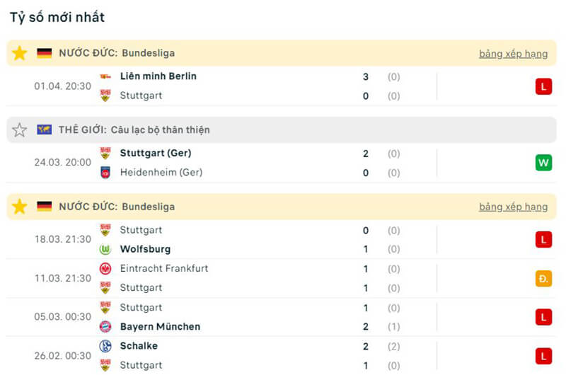 Phía đội khách Stuttgart cũng cho thấy tinh thần thi đấu bất ổn khi họ đang bị tụt xuống vị trí bét bảng với 20 điểm sau 26 vòng đấu.