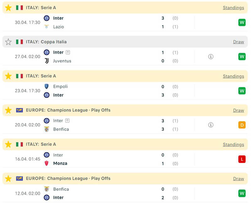 Trái lại hoàn toàn, đội khách Inter Milan lại thi đấu rất xuất sắc, đại diện thành Milan đã đem về danh hiệu siêu cúp Ý và đã lọt vào cả chung kết Coppa Italia. Không chỉ vậy, Inter Milan còn liên tiếp đánh bại các đội bóng sừng sỏ như Napoli, Juventus, Ac Milan và cả Lazio.