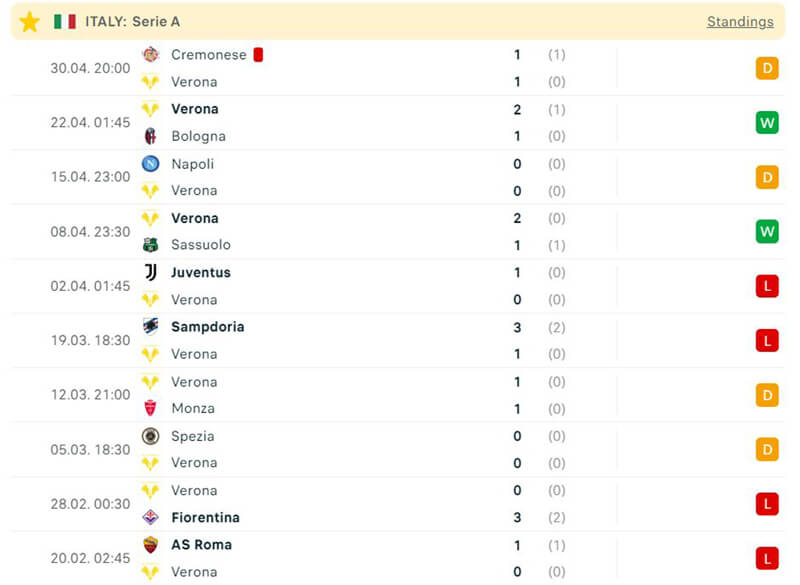 Đội chủ nhà Verona đang có phong độ thi trên sân nhà đáng trách. Đội bóng này đã để thua 50% các trận đấu trên sân nhà, trong đó có cả đội cuối bảng Sampdoria. Đó là hậu quả của việc không nâng cấp đội hình cũng như là phong độ thi đấu tệ hại của đội bóng.