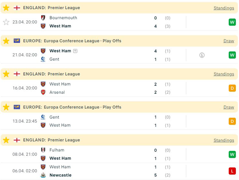 Đội chủ nhà West Ham đang chơi rất tốt ở trong 4 trận đấu gần đây. Không chỉ vậy, đoàn quân của HLV David Moyes còn giành được vé bào bán kết Europa Conference League trước đại diện đến từ Bỉ Kaa Gent.