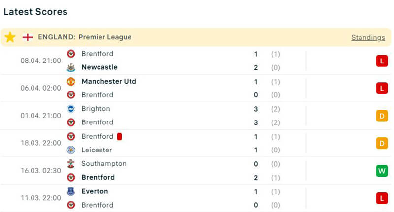 Phía bên kia chiến tuyến, đội khách Brentford còn tệ hại hơn khi họ mới chỉ có được duy nhất 1 chiến thắng, 2 trận hoà và 2 trận thua qua 5 vòng đấu gần đây nhất.